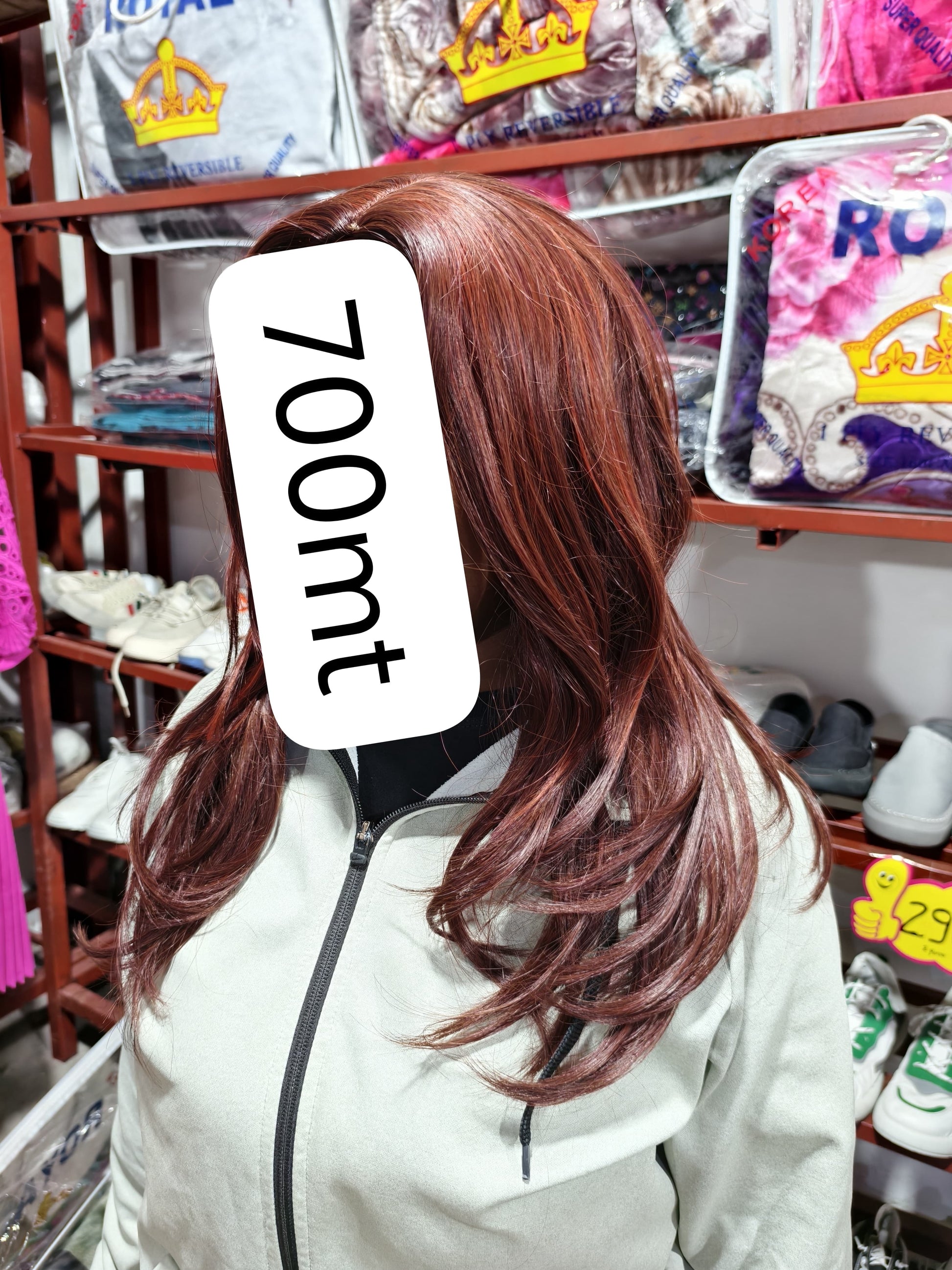 • Máscara de cabelo sintético (preço varejo: 1.200 MT; preço atacado: 700 MT)